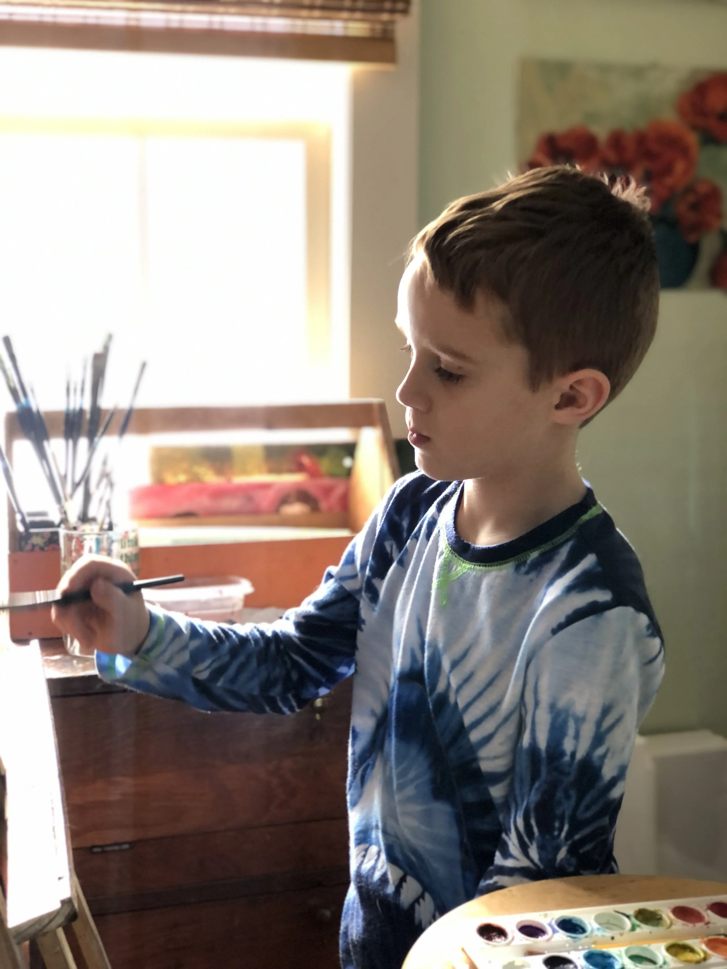 It was July, 2020. It was late. I had a bunch of pent up, creative energy. I remembered the thrifted canvas and acrylics were somewhere in the house. I found them, mocked up an easel of sort and got at it. I was thrilled (thrilled!) with how it came out. The sense of accomplishment was intoxicating. The thought of creating more art sent tingles down my spine. I was hooked! The rush on finishing a piece was undeniable. But, what impacted me most was what happened within WHILE I was painting. My mind cleared. My breath deepened. My soul connected to something much greater and more powerful than me. I relaxed. The art became meditative, and that peace is a gift.